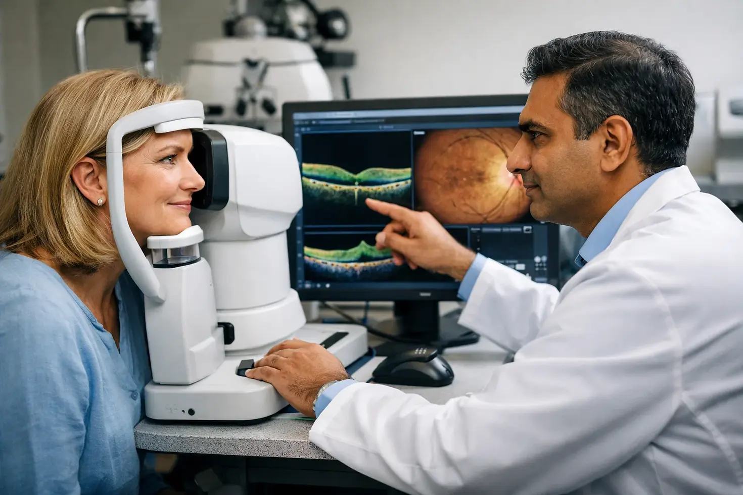 Even when a clinic can obtain a non-dilated image, a second test may still be required. The photograph may document the general appearance of the back of the eye, while another scan may be needed to clarify swelling, fluid, bleeding, or a membrane on the macula. Ask this upfront so you understand whether the first scan is the whole assessment or just the opening step.